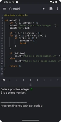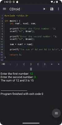 CDroid is a powerful, fast, and lightweight C IDE and compiler that brings desktop-level programming features to your fingertips. CDroid lets you write C code, compile it, and execute it instantly - ideal for students, learners, and professionals who want to code on the go.