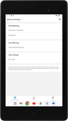 Personalized Intake Schedule: Input your vitamins and minerals, and our app will devise a timetable according to their compatibility and antagonism.