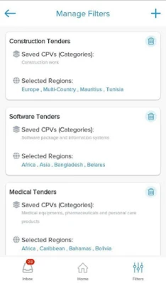 - Accessing to your business tenders easily by using your previously created filters.
