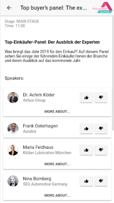 Mit der Procurement & Sustainability Summit App können Sie bequem mit den anderen Teilnehmern des Procurement & Sustainability Summit chatten. Außerdem haben Sie mit der App Zugriff auf das Programm, Anfahrtsbeschreibung und die Abstimmung über die besten Redner für den Procurement & Sustainability Summit Speaker Award.