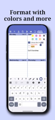 Rich Text Formatting: Customize your entries! Use bold, italics, colors, and more to highlight important tasks and appointments. Make your planner visually appealing and easy to read.